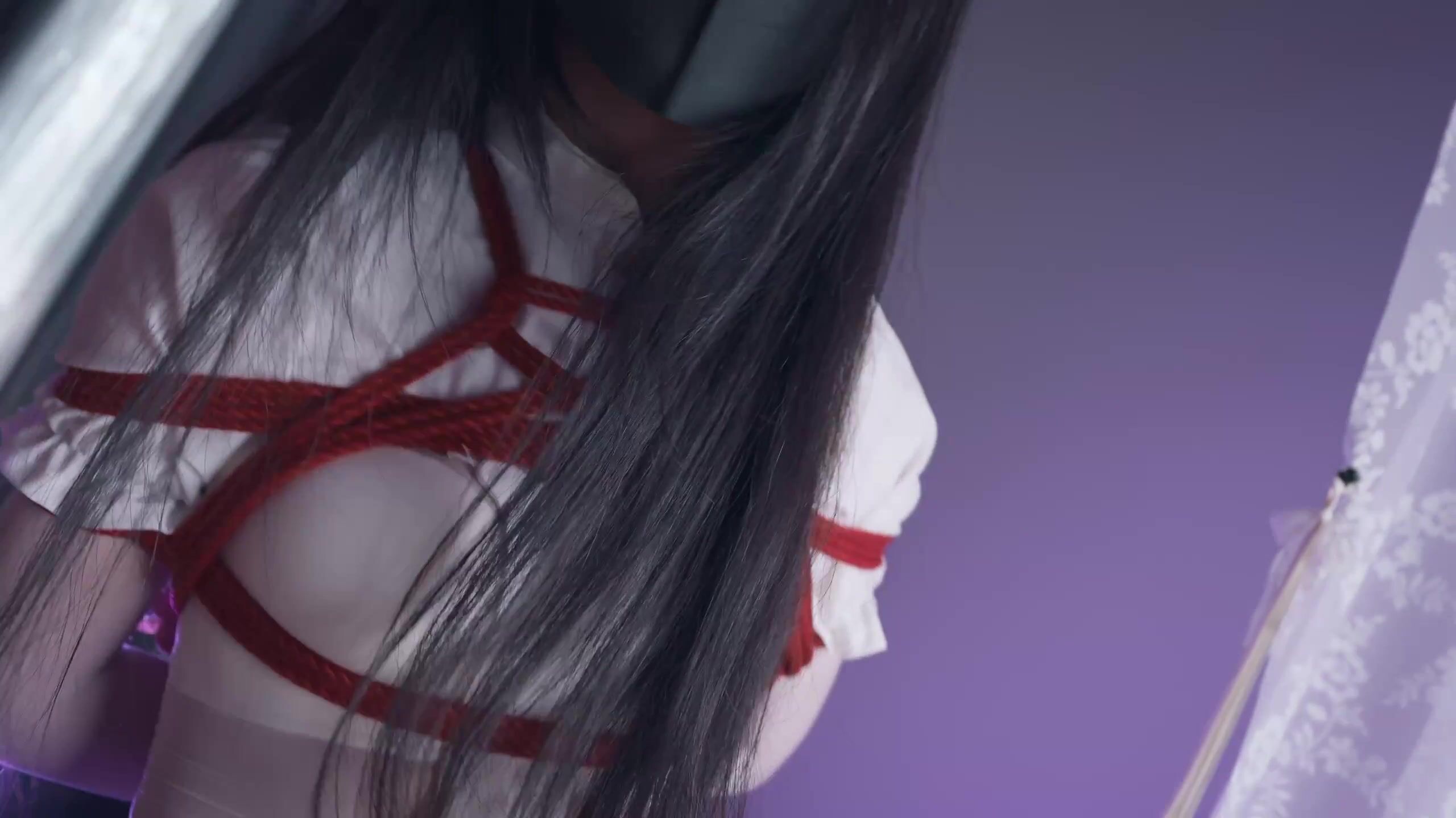 【悠米】《神圣修女被绑记》3 修女身着白色全包丝袜和12cm的高跟吊着罚站,还要被迫看着镜子里被玩弄的自己